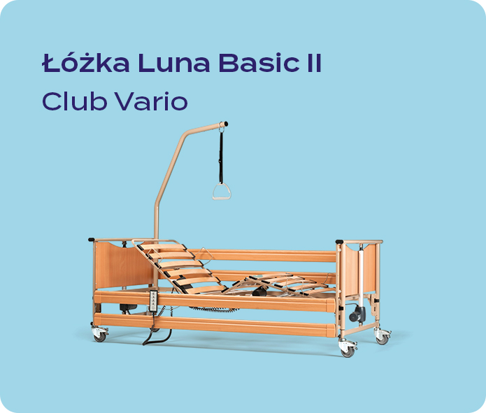 Nazwa produktu: łóżko rehabilitacyjne Luna Basic II/Club; Producent: Vermeiren, Reklamodawca: RehaBeat Sp. z o. o.